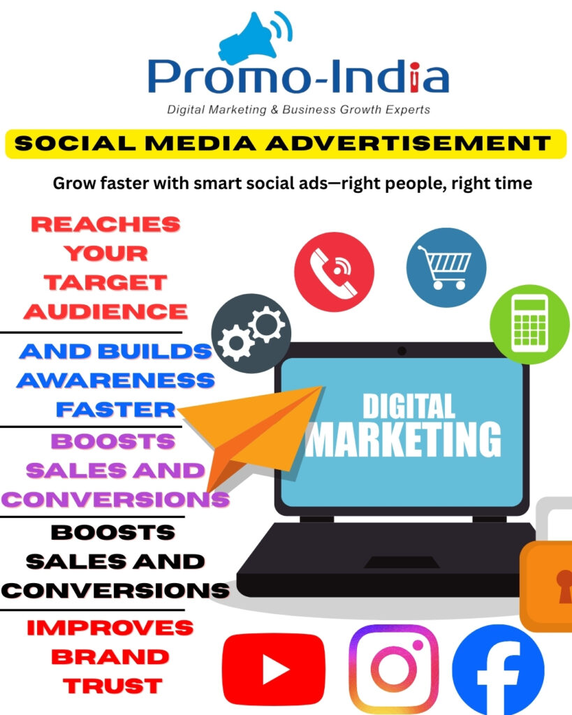 Promo India provides Social Media Advertisement Services to help businesses reach a larger audience, increase visibility, and grow faster online π²π